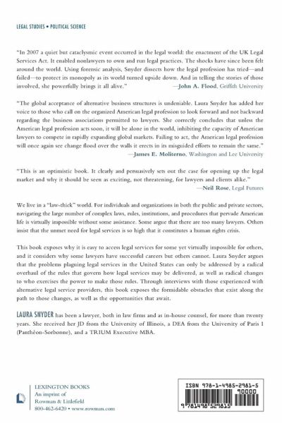 This book responds to the common objections to alternative business structures, describes the opportunities that such structures offer, exposes how lawyer self-regulation operates to obstruct the modernization of legal services, and includes interviews with persons who have experience with alternative legal service providers in other countries.