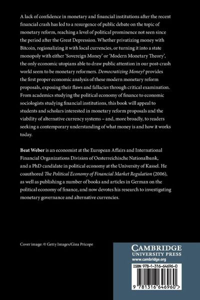 Weber provides an economic analysis of current, post-crash monetary reform proposals, including Bitcoin, sovereign money, regional money and modern monetary theory. The book critically examines these reform concepts, exposing their flaws and fallacies, guiding the reader towards a contemporary understanding of what money is and how it works today.