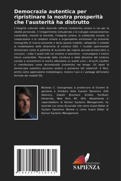 L'integrità culturale nella diversità rafforza l'entelechia umana in noi per la vitalità personale, il rinvigorimento istituzionale e lo sviluppo socioeconomico sostenibile, nonché la moralità, l'integrità umana, la solidarietà sociale, la cooperazione e le relazioni umane e organizzative amichevoli. La presente monografia di ricerca presenta e testa questo modello, utilizzando il metodo di modellazione delle dinamiche di sistema (SD). I risultati sperimentali dimostrano come le politiche di austerità del regime pseudo-aristocratico o sciccoso - sotto il quale tutti noi viviamo e lavoriamo - sconvolgano il nostro futuro sostenibile. Passando dalla struttura e dalla dinamica del sistema sociale a concentrare la nostra attenzione su eventi unici, i bruschi squilibri si manifestano come discontinuità sistemiche nel tempo. Gli ideali di democrazia autentica possono aiutare a prevenire tali catastrofi. Il libro, anche come applicazione metodologica, mostra l'uso e i vantaggi dell'analisi formale dei modelli SD.