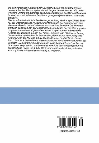 Vorwort Im vorliegenden Band der Schriftenreihe werden die Beiträge dokumentiert, die auf dem vom Bundesinstitut für Bevölkerungsforschung vom 14. bis zum 16. September 1998 in Bingen veranstalteten Seminar "Demographische Alterung und Wirtschaftswachstum" vorgetragen wurden. Die Veröffentlichung ist in der Reihenfolge der vorgetragenen Referate aufgebaut; im Anschluß an jedes Referat erfolgt eine Zusammenfassung der dazu geführten Diskussion. Daß die demographische Alterung der Gesellschaft ein Schwerpunkt demogra phischer Forschung ist, steht bereits seit langem unbestritten fest. Ob und in welchem Umfang sie allerdings auch Auswirkungen auf das Wirtschafts wachsturn hat, wird seit Jahren als Bevölkerungsfrage aufgeworfen und kontro vers diskutiert. Die Auswirkungen einer abnehmenden und damit alternden Bevölkerung auf das gesamtwirtschaftliche Wachstum, Konsum, Ersparnis und Investition, Produktionsentwicklung und Kapitalbildung werden von der Wirtschaftswissenschaft mit makroökonomischen Ansätzen untersucht, jedoch sind die Studien oft partiell und / oder berücksichtigen nur grobe Altersgruppen. Nicht immer wird in solchen makroökonomischen Analysen mit detaillierten Vorausberechnungen der Bevölkerung nach dem Alter und der Haushaltsgröße auf der Basis differenzierter Annahmen gearbeitet. Das vom Bundesinstitut für Bevölkerungsforschung ausgerichtete Seminar bot unterschiedliche Ansätze zur Untersuchung der Auswirkungen einer alternden Gesellschaft auf relevante wirtschaftliche Bereiche. Die Thematik zieht sich dabei von den demographischen Grundlagen der Bevölkerungsalterung über Innovationsmöglichkeiten, Auswirkungen auf den Arbeitsmarkt, Aspekte der Migration, Fragen der Alters-, Kranken- und Pflegeversicherung bis hin zufinanzpolitischen Problemen des "Generational Accounting" und Auswirkungen der Alterung auf die Standortqualität Deutschlands.