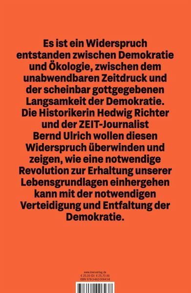 Es ist ein Widerspruch entstanden zwischen Demokratie und Ökologie, zwischen dem unabwendbaren Zeitdruck und der anscheinend gottgegebenen Langsamkeit der Demokratie. Die Historikerin Hedwig Richter und der ZEIT-Journalist Bernd Ulrich wollen diesen Widerspruch überwinden und zeigen, wie eine notwendige Revolution zur Erhaltung unserer Lebensgrundlagen einhergehen kann mit der notwendigen Verteidigung und Entfaltung der Demokratie. Dazu schauen sie zurück und in die Zukunft. Sie fragen nach der dunklen Seite der Demokratiegeschichte, nach den oft zerstörerischen sozialen und fossilen Bedingungen, unter denen sich unsere Demokratie in Deutschland und anderswo entfaltet hat. Und sie entwerfen eine Zukunft, die auch den kommenden Generationen die Gestaltungsfreiheiten garantieren, die für eine Demokratie essenziell sind.