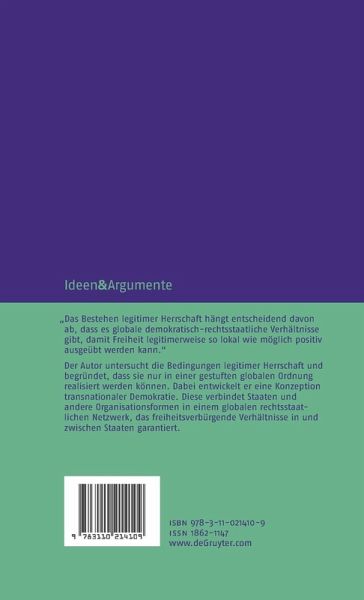 Diese Studie untersucht die Bedingungen legitimer Herrschaft und begründet, dass sie nur in einer gestuften globalen Ordnung realisiert werden können. Dabei werden im ersten Teil Ansätze der Gerechtigkeitstheorie, Demokratietheorie und Rechtsphilosophie kritisch gewürdigt und ein allgemeiner Entwurf von Legitimität auf der Grundlage eines republikanischen Freiheitsbegriffs entwickelt. Dieser Entwurf integriert individuelle und politische Aspekte der Freiheit, indem er Rechtsstaatlichkeit und Demokratie als entscheidende Merkmale legitimer Herrschaft auszeichnet. Im zweiten Teil wird in Auseinandersetzung mit zentralen Strömungen der politischen Philosophie und Theorie des Völkerrechts sowie der internationalen Beziehungen ein eigenständiges Modell transnationaler Demokratie konzipiert. Dieses Modell verbindet Überlegungen zur Gestalt und Notwendigkeit von Einzelstaaten und anderen politischen Organisationsformen mit der Vorstellung eines globalen rechtsstaatlichen Netzwerks. Erst in dieser Kombination ist gewährleistet, dass die Verhältnisse in und zwischen den Staaten und sonstigen Organisationen freiheitsverbürgend verfasst bzw. nicht-beherrschend sind und somit Anspruch auf Legitimität erheben können.