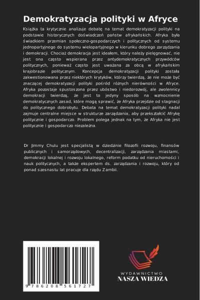 Ksi¿¿ka ta krytycznie analizuje debat¿ na temat demokratyzacji polityki na podstawie historycznych do¿wiadcze¿ pästw afrykäskich. Afryka by¿a ¿wiadkiem przemian spo¿eczno-gospodarczych i politycznych od systemu jednopartyjnego do systemu wielopartyjnego w kierunku dobrego zarz¿dzania i demokracji. Chociä demokracja jest ideäem, który nale¿y piel¿gnowä, nie jest ona cz¿sto wspierana przez antydemokratycznych przywódców politycznych, poniewä cz¿sto jest uwäana za obc¿ w afrykäskim krajobrazie politycznym. Koncepcja demokratyzacji polityki zostäa zakwestionowana przez niektórych krytyków, którzy twierdz¿, ¿e nie mo¿e by¿ znacz¿cej demokratyzacji polityki po¿ród ró¿nych nierówno¿ci w Afryce. Afryka pozostaje spustoszona przez ubóstwo i niedorozwój, ale zwolennicy demokracji twierdz¿, ¿e jest to jedyny sposób na wzmocnienie demokratycznych zasad, które mog¿ sprawi¿, ¿e Afryka przejdzie od stagnacji do politycznego dobrobytu. Debata na temat demokratyzacji polityki nadal zajmuje centralne miejsce w strukturze zarz¿dzania, aby przeksztäci¿ Afryk¿ politycznie i gospodarczo. Problem polega jednak na tym, ¿e Afryka nie jest politycznie i gospodarczo niezale¿na.