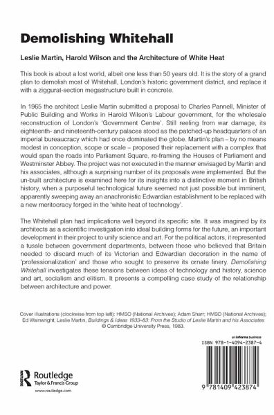 This book is about a lost world - albeit one less than 50 years old. In the era of Harold Wilson's 'white heat', architect Sir Leslie Martin proposed a grand plan to demolish and rebuild a swathe of historic Whitehall, London's government district. At once optimistic and paternalistic, it simultaneously reinforced and challenged a rigidly hierarchical social order at the scales of building, city and nation. This project was never realized, but nevertheless, the plans and the political history surrounding them offer unique insights into Wilson's government, Wilson's Britain and Martin's distinctive scientific model of architecture, and more broadly into the connections between architecture, politics and society.