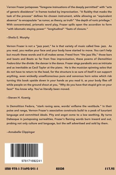 Vernon Frazer has written over thirty books of poetry, three novels and a short story collection. His poetry, fiction and nonfiction have appeared in Aught, Big Bridge, First Intensity, Jack Magazine, Lost and Found Times, Moria, Miami SunPost, Muse Apprentice Guild, Sidereality, Xstream and many other literary magazines. He introduced IMPROVISATIONS at The Poetry Project at St. Mark's Church in Manhattan. Working in multi-media, Frazer has performed his poetry with the late saxophonist Thomas Chapin, the Vernon Frazer Poetry Band and as a solo poet-bassist. His jazz poetry recordings and multimedia work are available on Youtube.