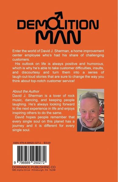 About the Book Enter the world of David J. Sherman, a home improvement center employee who's had his share of challenging customers. His outlook on life is always positive and humorous, which is why he's able to take customer difficulties, insults, and discourtesy and turn them into a series of laugh-out-loud stories that are sure to change the way you think about top-notch customer service! About the Author David J. Sherman is a lover of rock music, dancing, and keeping people laughing. He's always looking forward to the next experience in life and enjoys inspiring others to do the same. David hopes people remember that every single soul on this planet has a journey and it is different for every single soul.