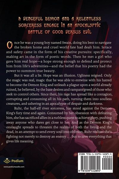 A vengeful demon and a relentless sorceress engage in an apocalyptic battle of good versus evil in this dark fantasy gamelit adventure. Once he was a young boy named Swain, doing his best to navigate the broken home and cruel world fate had dealt him. Solace and safety came in the form of his creative pursuits: specifically, making art in the form of poetic words. Then he met a girl who gave him real hope-a hope strong enough to defend and protect him from life's adversities-and the belief that his poetry had the power to summon true beauty. But it was all a lie. Hope was an illusion. Ugliness reigned. Only the magic was real, magic that he was able to entwine with his hatred to become the Demon King and unleash a plague upon a world already ruined, he believed, by the base desires and rampant greed of those who seek to control others. Since then, his rage has spread like a contagion, corrupting and consuming all in his path, turning them into soulless creatures, and ushering in an apocalypse of despair and darkness. Ruhr, the half-elf river sorceress, has stood against the Demon King's fury time and again. Consumed by her obsession with defeating him, she has sacrificed allies in a ruthless quest to achieve glory, pushing away anyone who dares get close to her. And as the Demon King's onslaught spreads to threaten the realms of both the living and the dead, in an attempt to send every soul into oblivion, Ruhr realizes she's fighting not merely to destroy an enemy . . . but to save everything that gives life meaning.