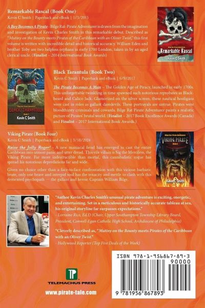 The maniacal Black Tarantula has catapulted the entirety of the West Indies into utmost panic and pandemonium.. Far more demon than mortal, this pirate rogue delights in the torture, persecution and outright slaughter of countless innocents both on land as well at sea. Landlubbers and sailors alike are fraught with harrowing dread and unmitigated apprehension at the mere mention of the degenerate demon's name. Despite the daunting peril of this undertaking, the heroic Captain William Bilge risks everything all in a showdown with the unconscionable lunatic. Captain William Bilge now faces the most daunting challenge of his entire lifetime. He is tasked with facing his most treacherous and deranged adversary, the Black Tarantula, in order to rescue his beloved fiancée from the demon's insidious clutches. To accomplish this formidable and perilous mission, he will need to rely on his well-trained crew, his proven cunning and every trick in his honed arsenal in order to claim victory. Chocked full of captivating and jaunty sailor's yarns and enthralling adventures, the unique and imaginative Bilge Rat Pirate Adventurer series is a must read for every pirate aficionado. Welcome to the Golden Age of Piracy! This exceedingly brief but profoundly memorable time span spawned copious well-known reprobates such as Blackbeard, Calico Jack and Black Bart to name but a few. In the majority of instances, these nautical plunderers have been portrayed in both literature and film as noble and gallant adventurers and paladins. These honorable and virtuous representations could not be further from the truth. In reality, pirates were notorious criminals and despicable cowards preying on the weak and helpless as they perpetuated countless acts of savagery and barbarity.