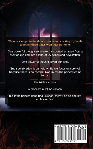 We're no longer in the demon realm and clicking my heels together won't get us home. One powerful thought somehow transported us away from a river of lava and into a land of icy winds and devastation. One powerful thought saved our lives. But a celebration is on hold while we focus on survival because there is no escape. Not unless the princes come for us. The trials are over. A monarch must be chosen. But if the princes don't find us soon, there'll be no one left to choose from.