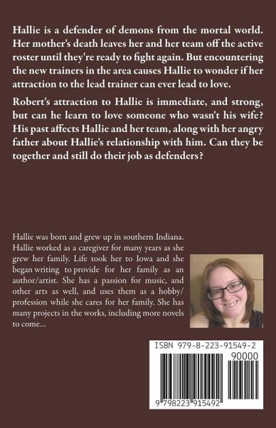 Hallie is a defender of demons from the mortal world. Her mother's death leaves her and her team off the active roster until they're ready to fight again. But encountering the new trainers in the area causes Hallie to wonder if her attraction to the lead trainer can ever lead to love. Robert's attraction to Hallie is immediate, and strong, but can he learn to love someone who wasn't his wife? His past affects Hallie and her team, along with her angry father about Hallie's relationship with him. Can they be together and still do their job as defenders?