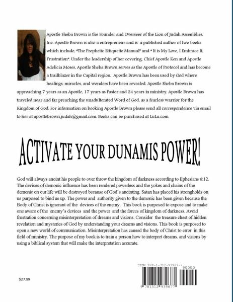 This book is purposed to expose and to make one aware of the enemy's devices and the power and the forces of kingdom of darkness. Avoid frustration concerning misinterpretation of dreams and visions. Consider the treasure chest of hidden revelation and mysteries of God by understanding your dreams and visions. This book is purposed to open a new world of communication. Misinterpretation has caused the body of Christ to error in this field of ministry. The purpose of my book is to train a person how to interpret dreams. and visions by using a biblical system that will make the interpretation accurate.