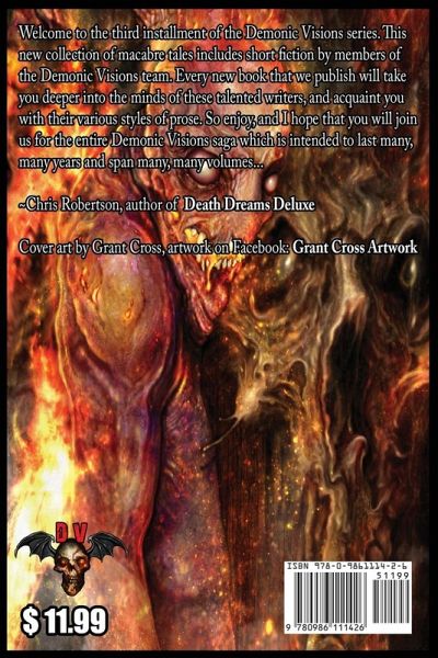 Welcome to the third installment of the Demonic Visions series. This new collection of macabre tales includes short fiction by members of the Demonic Visions team. Every new book that we publish will take you deeper into the minds of these talented writers, and acquaint you with their various styles of prose. So enjoy, and I hope that you will join us for the entire Demonic Visions saga which is intended to last many, many years and span many, many volumes...