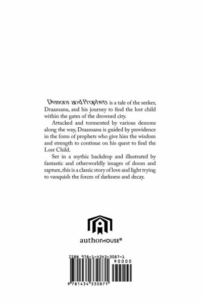 Demons and Prophets is a tale of the seeker, Draamanu, and his journey to find the lost child within the gates of the drowned city. Attacked and tormented by various demons along the way, Draamanu is guided by providence in the form of prophets who give him the wisdom and strength to continue on his quest to find the Lost Child. Set in a mythic backdrop and illustrated by fantastic and otherworldly images of doom and rapture, this is a classic story of love and light trying to vanquish the forces of darkness and decay.