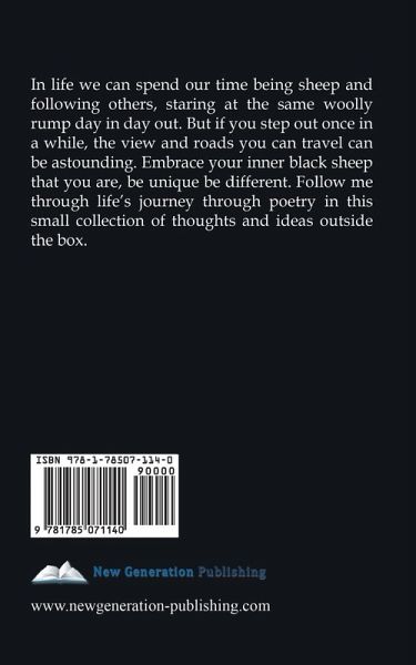 In life we can spend our time being sheep and following others, staring at the same woolly rump day in day out. But if you step out once in a while, the view and roads you can travel can be astounding. Embrace your inner black sheep that you are, be unique be different. Follow me through life's journey through poetry in this small collection of thoughts and ideas outside the box.