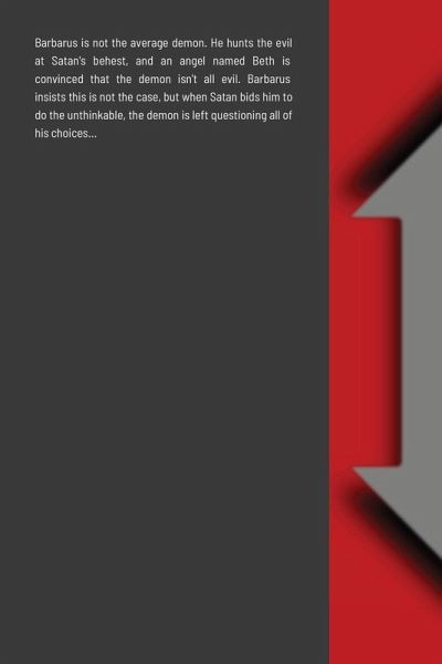 Barbarus is not the average demon. He hunts evildoers of the world at the behest of Satan. An angel, Beth, believes he is not all evil. Though Barbarus insists this is not true, he is forced to question his choices when Satan asks him to do the unthinkable.