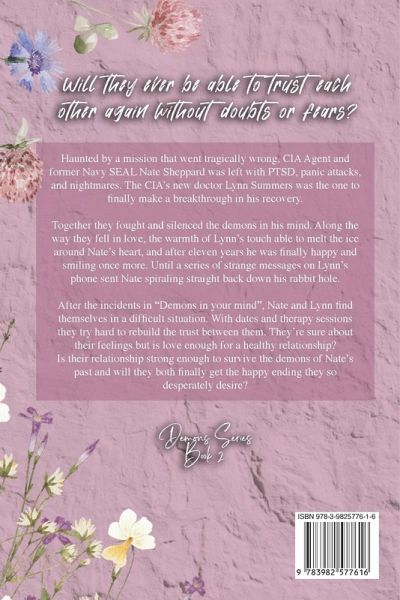 Haunted by a mission that went tragically wrong, CIA Agent and former Navy SEAL Nate Sheppard was left with PTSD, panic attacks, and nightmares. The CIA's new doctor Lynn Summers was the one to finally make a breakthrough in his recovery. Together they fought and silenced the demons in his mind. Along the way they fell in love, the warmth of Lynn's touch able to melt the ice around Nate's heart, and after eleven years he was finally happy and smiling once more. Until a series of strange messages on Lynn's phone sent Nate spiraling straight back down his rabbit hole. After the incidents in "Demons in your mind", Nate and Lynn find themselves in a difficult situation. With dates and therapy sessions they try hard to rebuild the trust between them. They're sure about their feelings but is love enough for a healthy relationship? Is their relationship strong enough to survive the demons of Nate's past and will they both finally get the happy ending they so desperately desire? This is book 2 of the "Demons Series"