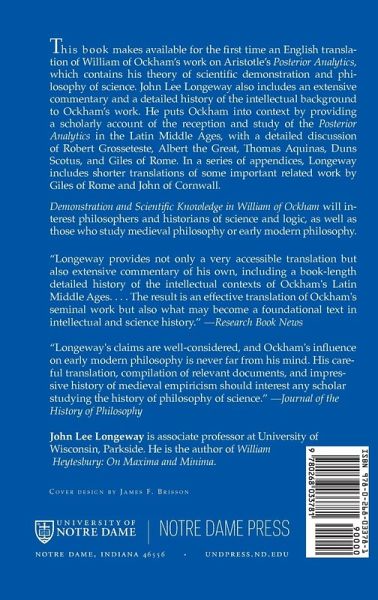 This book makes available for the first time an English translation of William Ockham's work on Aristotle's Posterior Analytics, which contains his theory of scientific demonstration and philosophy of science. John Lee Longeway also includes an extensive commentary and a detailed history of the intellectual background to Ockham's work in the Latin Middle Ages. Longeway puts Ockham into context by providing a scholarly account of the reception and study of the Posterior Analytics in the Latin Middle Ages, with a detailed discussion of Robert Grosseteste, Albert the Great, Thomas Aquinas, Duns Scotus, and Giles of Rome. In a series of appendices, Longeway includes shorter translations of some important related work by Giles of Rome and John of Cornwall. In his introductory discussion, Longeway examines the exact character of the highest sort of demonstration (demonstratio potissima), the relations of the empirical sciences to mathematics, natural causation and the manner in which natural laws come to be known, the possibility of natural knowledge, our knowledge of God, and the relation of theology to the other sciences. Longeway discusses the way in which scientific epistemology and theory of demonstration corresponds to the metaphysical position of its interpreter, in particular to the Neoplatonism of Grosseteste, the radical Aristotelianism of Giles of Rome and Albert the Great, the more moderate Aristotelianism of Aquinas, and the nominalistic empiricism of Ockham. Throughout the book, Longeway makes a case for Ockham's importance as the founder of Empiricism in the West.