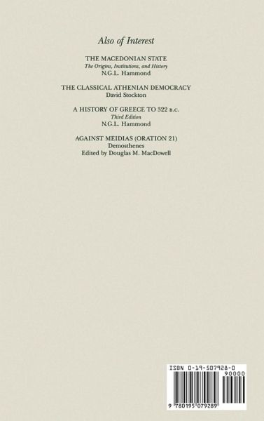 Professor Sealey studies the political history of Greece, especially Athens, from 386 to 322 BC. Although Demosthenes figures largely in the middle and later chapters, the book is not intended to be purely biographical, and a good deal of attention is paid to social and international factors bearing on Athenian political activity during this period. The story is one of two-fold failure: by launching a league of a novel type in 378 the Athenians tried to bring a new order into Greek affairs, but were eventually overcome by Macedon; Demosthenes discovered his mission as a statesman and failed because of Macedonian power. The narrative begins in 387/6 BC, when the Spartans and their allies secured financial help from Persia, gained control of the Hellespont and cut the Athenians off from one of their main sources of grain. Sealey describes the events of the turbulent years which followed, the threat to Athens posed by Philip II and the rise of Demosthenes to power in Athens. The book concludes with an analysis of the defeat of Athens and its allies in 322, and ends with the suicide of Demosthenes.
