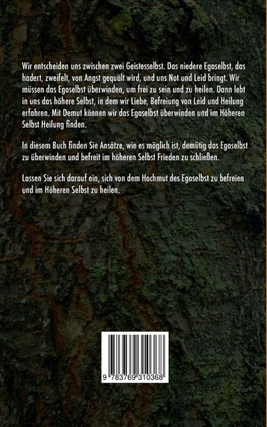 Wir entscheiden uns zwischen zwei Geistesselbst. Das niedere Egoselbst, das hadert, zweifelt, von Angst gequält wird, und uns Not und Leid bringt. Wir müssen das Egoselbst überwinden, um frei zu sein und zu heilen. Dann lebt in uns das höhere Selbst, in dem wir Liebe, Befreiung von Leid und Heilung erfahren. Mit Demut können wir das Egoselbst überwinden und im Höheren Selbst Heilung finden. In diesem Buch finden Sie Ansätze, wie es möglich ist, demütig das Egoselbst zu überwinden und befreit im höheren Selbst Frieden zu schließen. Lassen Sie sich darauf ein, sich von dem Hochmut des Egoselbst zu befreien und im Höheren Selbst zu heilen.
