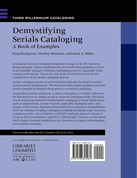 This essential reference teaches library staff how to handle the most common and confusing problems in serials cataloging by providing clear examples, practice exercises, and helpful advice based on experience. Serials cataloging can be an overwhelming task that frustrates even the most seasoned professional. This book provides simple guidance and real-world examples to illustrate best practices in serials cataloging. Demystifying Serials Cataloging: A Book of Examples is a reliable reference for learning how to catalog serials or improve cataloging skills. The book covers important elements of descriptive cataloging of serial publications such as explanations, sample records, applicable cataloging rules, and images of the serials. Examples demonstrate best practices and guidelines from the industry's leading cataloging standards including Anglo-American Cataloguing Rules: Second Revised Edition; CONSER Cataloging Manual; Library of Congress Rule Interpretation; and OCLC Bibliographic Formats and Standards. Each chapter contains helpful practice exercises to ensure understanding and reinforce learning.
