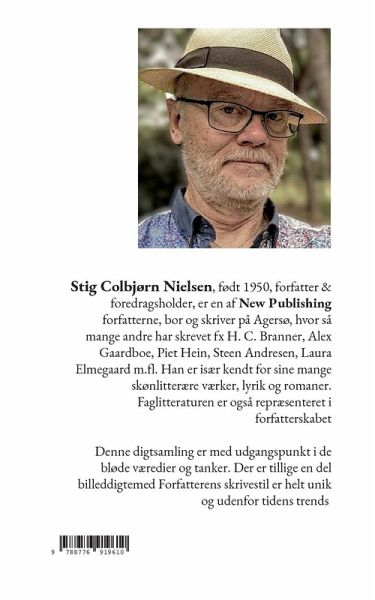 Moderne dansk lyrik fra Agersø med udgangspunkt i de bløde, menneskelige værdier og tanker. Derfor falder denne digtsamling udenfor tidens ellers noget hårde mode i lyrikken. Der indgår også kortprosa og en novelle i digtsamlingen Billeddigtene er mange, og de indgår som en vigtig del af helhedsoplevelsen for læseren. Disse er imidlertid ikke traditionel kunst; men tegninger dukket frem fra gigttræning af hænder og fingre. Nogle af dem er ganske farvestrålende.