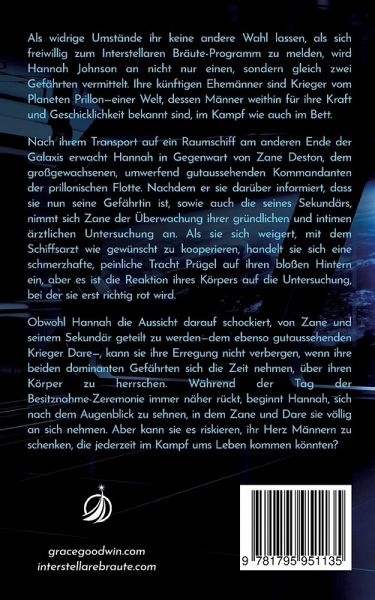 Als widrige Umstände ihr keine andere Wahl lassen, als sich freiwillig zum Interstellaren Bräute-Programm zu melden, wird Hannah Johnson an nicht nur einen, sondern gleich zwei Gefährten vermittelt. Ihre künftigen Ehemänner sind Krieger vom Planeten Prillon-einer Welt, dessen Männer weithin für ihre Kraft und Geschicklichkeit bekannt sind, im Kampf wie auch im Bett. Nach ihrem Transport auf ein Raumschiff am anderen Ende der Galaxis erwacht Hannah in Gegenwart von Zane Deston, dem großgewachsenen, umwerfend gutaussehenden Kommandanten der prillonischen Flotte. Nachdem er sie darüber informiert, dass sie nun seine Gefährtin ist, sowie auch die seines Sekundärs, nimmt sich Zane der Überwachung ihrer gründlichen und intimen ärztlichen Untersuchung an. Als sie sich weigert, mit dem Schiffsarzt wie gewünscht zu kooperieren, handelt sie sich eine schmerzhafte, peinliche Tracht Prügel auf ihren bloßen Hintern ein, aber es ist die Reaktion ihres Körpers auf die Untersuchung, bei der sie erst richtig rot wird. Obwohl Hannah die Aussicht darauf schockiert, von Zane und seinem Sekundär geteilt zu werden-dem ebenso gutaussehenden Krieger Dare-, kann sie ihre Erregung nicht verbergen, wenn ihre beiden dominanten Gefährten sich die Zeit nehmen, über ihren Körper zu herrschen. Während der Tag der Besitznahme-Zeremonie immer näher rückt, beginnt Hannah, sich nach dem Augenblick zu sehnen, in dem Zane und Dare sie völlig an sich nehmen. Aber kann sie es riskieren, ihr Herz Männern zu schenken, die jederzeit im Kampf ums Leben kommen könnten? Anmerkung des Verlags: Den Kriegern hingegeben ist ein eigenständiges Buch, das in der gleichen Welt spielt wie Dem Partner zugewiesen. Es ist ein erotischer Liebesroman, in dem Spanking, sexuelle Szenen, medizinische Spielchen, BDSM-Elemente und mehr vorkommen. Falls Ihnen derartige Inhalte unangenehm sein sollten, bitten wir Sie, dieses Buch nicht zu kaufen.