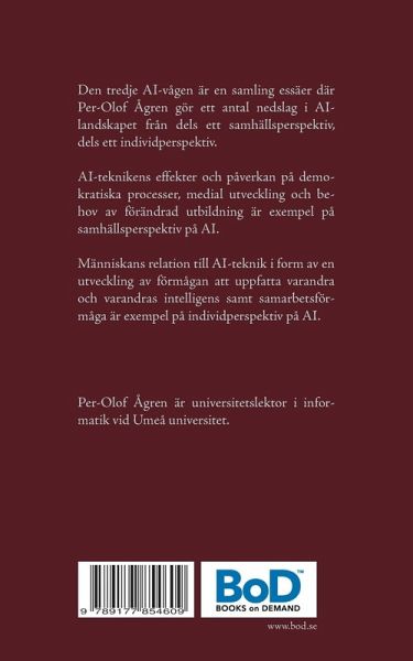 Den tredje AI-vågen är en samling essäer där Per-Olof Ågren gör ett antal nedslag i AI-landskapet från dels ett samhällsperspektiv, dels ett individperspektiv. AI-teknikens effekter och påverkan på demokratiska processer, medial utveckling och behov av förändrad utbildning är exempel på samhällsperspektiv på AI. Människans relation till AI-teknik i form av en utveckling av förmågan att uppfatta varandra och varandras intelligens samt samarbetsförmåga är exempel på individperspektiv på AI.