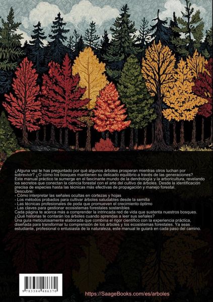 Esta guía práctica ofrece una visión integral sobre la dendrología y arboricultura, abordando los aspectos fundamentales del estudio y manejo de los árboles y el bosque. El libro está diseñado tanto para profesionales del sector forestal como para estudiantes universitarios.La obra se estructura en cuatro secciones principales:En la primera parte, se profundiza en los fundamentos de la dendrología, incluyendo la clasificación taxonómica de los árboles, sus características morfológicas y los métodos de identificación. Se analizan detalladamente las estructuras de corteza, patrones de ramificación y variaciones estacionales.La segunda sección se centra en la gestión del vivero y las técnicas de propagación. Aborda métodos de reproducción como la siembra, el esquejado y las técnicas de injerto. También incluye información sobre la preparación del suelo, el espaciamiento óptimo y los cuidados esenciales para árboles jóvenes.La tercera parte está dedicada a la arboricultura práctica, con énfasis en las técnicas de poda. Se detallan los diferentes tipos de cortes, las herramientas necesarias y los calendarios de poda específicos para cada especie.La sección final aborda la silvicultura y el manejo forestal, explorando los ecosistemas boscosos, su estructura y dinámica. Se presentan estrategias para la gestión sostenible del bosque, incluyendo conceptos de entresaca, regeneración natural y protección forestal.Cada capítulo incluye ilustraciones detalladas, tablas informativas y guías paso a paso que facilitan la comprensión y aplicación práctica de los conceptos presentados.Este libro ha sido creado utilizando tecnologías innovadoras como la Inteligencia Artificial y herramientas especialmente desarrolladas, por ejemplo, en la búsqueda de ideas, la investigación, la escritura, la edición, el control de calidad y el diseño de ilustraciones decorativas.De esta manera, queremos ofrecerle una experiencia de lectura especialmente coherente, moderna y de mayor calidad.