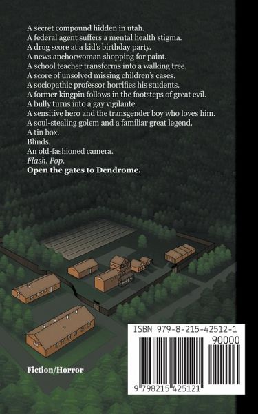 A secret compound hidden in utah. A federal agent suffers a mental health stigma. A drug score at a kid's birthday party. A news anchorwoman shopping for paint. A school teacher transforms into a walking tree. A score of unsolved missing children's cases. A sociopathic professor horrifies his students. A former kingpin follows in the footsteps of great evil. A bully turns into a gay vigilante. A sensitive hero and the transgender boy who loves him. A soul-stealing golem and a familiar great legend. A tin box. Blinds. An old-fashioned camera. Flash. Pop. Open the gates to Dendrome.