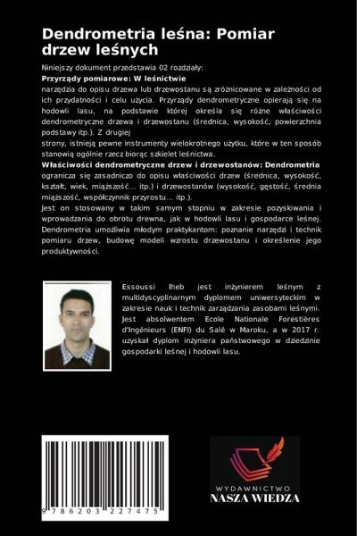 Niniejszy dokument przedstawia 02 rozdziäy: Przyrz¿dy pomiarowe: W le¿nictwienarz¿dzia do opisu drzewa lub drzewostanu s¿ zró¿nicowane w zale¿no¿ci od ich przydatno¿ci i celu u¿ycia. Przyrz¿dy dendrometryczne opieraj¿ si¿ na hodowli lasu, na podstawie której okre¿la si¿ ró¿ne w¿äciwo¿ci dendrometryczne drzewa i drzewostanu (¿rednica, wysoko¿¿, powierzchnia podstawy itp.). Z drugiej strony, istniej¿ pewne instrumenty wielokrotnego u¿ytku, które w ten sposób stanowi¿ ogólnie rzecz bior¿c szkielet le¿nictwa.W¿äciwo¿ci dendrometryczne drzew i drzewostanów: Dendrometriaogranicza si¿ zasadniczo do opisu w¿äciwo¿ci drzew (¿rednica, wysoko¿¿, ksztät, wiek, mi¿¿szo¿¿... itp.) i drzewostanów (wysoko¿¿, g¿sto¿¿, ¿rednia mi¿¿szo¿¿, wspó¿czynnik przyrostu... itp.).Jest on stosowany w takim samym stopniu w zakresie pozyskiwania i wprowadzania do obrotu drewna, jak w hodowli lasu i gospodarce le¿nej. Dendrometria umo¿liwia m¿odym praktykantom: poznanie narz¿dzi i technik pomiaru drzew, budow¿ modeli wzrostu drzewostanu i okre¿lenie jego produktywno¿ci.