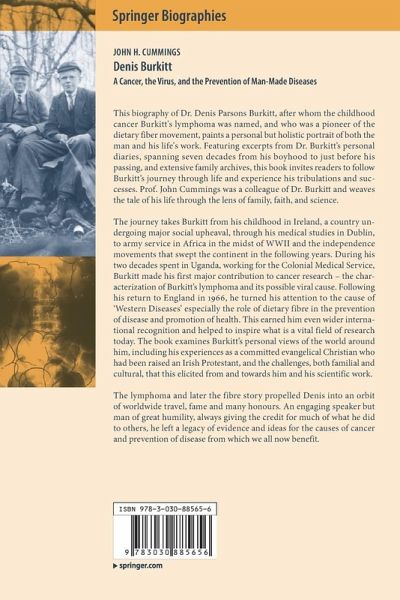 This biography of Dr. Denis Parsons Burkitt, after whom the childhood cancer Burkitt's lymphoma was named, and who was a pioneer of the dietary fiber movement, paints a personal but holistic portrait of both the man and his life's work. Featuring excerpts from Dr. Burkitt's personal diaries, spanning seven decades from his boyhood to just before his passing, and extensive family archives, this book invites readers to follow Burkitt's journey through life and experience his tribulations and successes. Prof. John Cummings was a colleague of Dr. Burkitt and weaves the tale of his life through the lens of family, faith, and science.