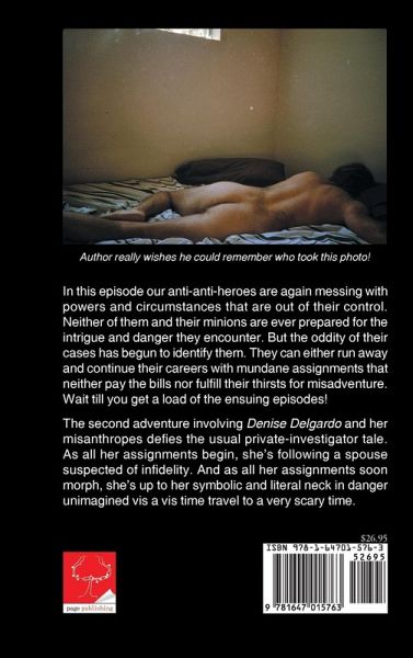 In this episode our anti-anti-heroes are again messing with powers and circumstances that are out of their control. Neither of them and their minions are ever prepared for the intrigue and danger they encounter. But the oddity of their cases has begun to identify them. They can either run away and continue their careers with mundane assignments that neither pay the bills nor fulfill their thirsts for misadventure. Wait till you get a load of the ensuing episodes! The second adventure involving Denise Delgardo and her misanthropes defies the usual private-investigator tale. As all her assignments begin, she's following a spouse suspected of infidelity. And as all her assignments soon morph, she's up to her symbolic and literal neck in danger unimagined vis a vis time travel to a very scary time.