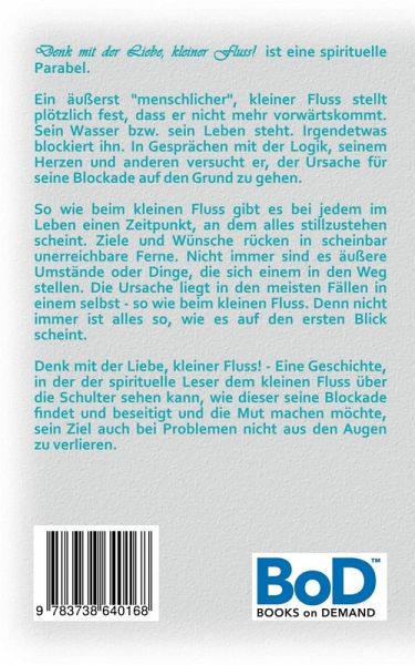 Denk mit der Liebe, kleiner Fluss! ist eine spirituelle Parabel. Ein äußerst "menschlicher" kleiner Fluss stellt plötzlich fest, dass er nicht mehr vorwärtskommt. Sein Leben bzw. sein Wasser steht, er ist nicht mehr im Fluss. Irgendetwas blockiert ihn. In Gesprächen mit der Logik, seinem Herzen und anderen versucht er, der Ursache für seine Blockade auf den Grund zu gehen. So wie beim kleinen Fluss gibt es bei jedem im Leben einen Zeitpunkt, an dem alles stillzustehen scheint. Ziele und Wünsche rücken in scheinbar unerreichbare Ferne. Nicht immer sind es äußere Umstände oder Dinge, die sich einem in den Weg stellen. Die Ursache liegt in den meisten Fällen in einem selbst - so wie beim kleinen Fluss. Denn nicht immer ist alles so, wie es auf den ersten Blick scheint.Denk mit der Liebe, kleiner Fluss! - Eine Geschichte, in der der spirituelle Leser dem kleinen Fluss über die Schulter sehen kann, wie dieser seine Blockade findet und beseitigt und die Mut machen möchte, sein Ziel auch bei Problemen nicht aus den Augen zu verlieren.