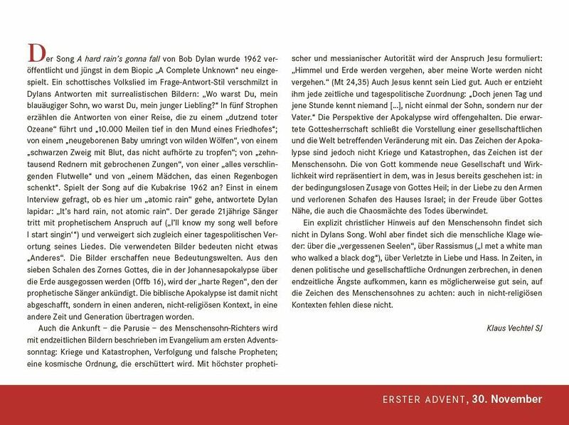Denkwege durch Advent und Weihnachtszeit - gespurt und gestaltet, beleuchtet und durchkreuzt von 38 Autorinnen und Autoren aus der sympathischen Vielfalt von Theologie und Kirche. Mit dabei sind viele bekannte und beliebte Namen aus der Wochenzeitschrift CHRIST IN DER GEGENWART. U.a. schreiben Bischof Gerhard Feige, Schwester Philippa Rath, Gotthard Fuchs, Annette Jantzen, Martin Werlen, Katrin Brockmöller, Christian Heidrich, Ulrike Lynn und Schwester Paulina Kleinsteuber. Darüber hinaus gehören viele Autorinnen und Autoren aus dem deutschsprachigen Raum dazu, die es sich zu entdecken lohnt. Der Begleiter lebt - wie die Zeitschrift auch - von hintergründigen spirituell-theologischen Texten, die durch eindrucksvolle Bilder ergänzt werden.