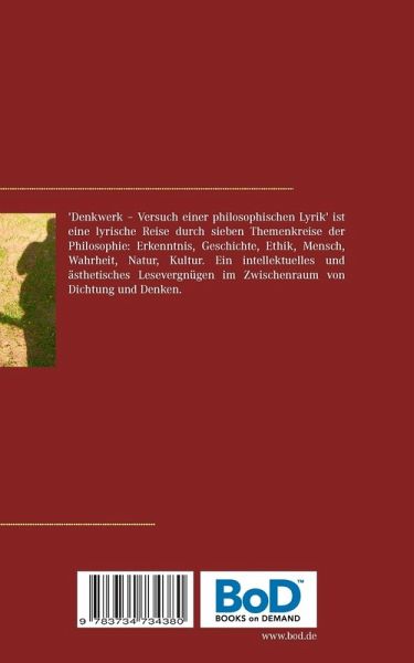 'Denkwerk - Versuch einer philosophischen Lyrik' ist eine lyrische Reise durch sieben Themenkreise der Philosophie: Erkenntnis, Geschichte, Ethik, Mensch, Wahrheit, Natur, Kultur. Ein intellektuelles und ästhetisches Lesevergnügen im Zwischenraum von Dichtung und Denken.
