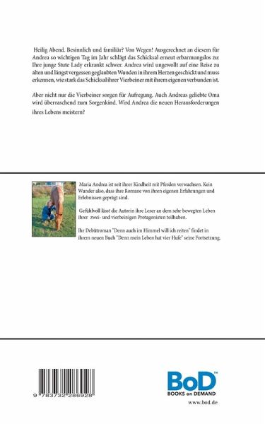 Heilig Abend. Besinnlich und familiär? Von wegen! Ausgerechnet an diesem für Andrea so wichtigen Tag im Jahr schlägt das Schicksal erneut erbarmungslos zu: Ihre junge Stute Lady erkrankt schwer. Andrea wird ungewollt auf eine Reise zu alten und längst vergessen geglaubten Wunden in ihrem Herzen geschickt und muss erkennen, wie stark das Schicksal ihrer Vierbeiner mit ihrem eigenen verbunden ist.Aber nicht nur die Vierbeiner sorgen für Aufregung. Auch Andreas geliebte Oma wird überraschend zum Sorgenkind.Wird Andrea die neuen Herausforderungen ihres Lebens meistern?