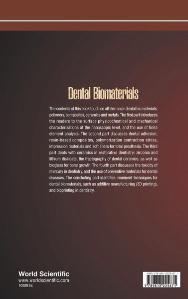 The contents of this book touch on the all major dental biomaterials: polymers, composites, ceramics and metals. The first part introduces the readers to the surface physicochemical and mechanical characterizations at the nanoscopic level, and the use of finite element analysis. The second part discusses dental adhesion, resin-based composites, polymerization contraction stress, impression materials and soft liners for total prosthesis. The third part deals with ceramics in restorative dentistry: zirconia and lithium disilicate, the fractography of dental ceramics, as well as bioglass for bone growth. The fourth part discusses the toxicity of mercury in dentistry, and the use of preventive materials for dental diseases. The concluding part identifies imminent techniques for dental biomaterials, such as additive manufacturing (3D printing), and bioprinting in dentistry.