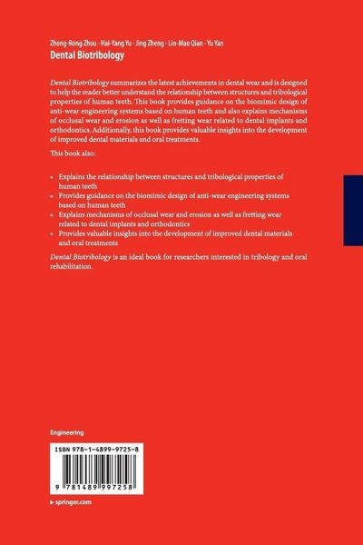 Dental Biotribology summarizes the latest achievements in dental wear and is designed to help the reader better understand the relationship between structures and tribological properties of human teeth. This book provides guidance on the biomimic design of anti-wear engineering systems based on human teeth and also explains mechanisms of occlusal wear and erosion as well as fretting wear related to dental implants and orthodontics. Additionally, this book provides valuable insights into the development of improved dental materials and oral treatments.