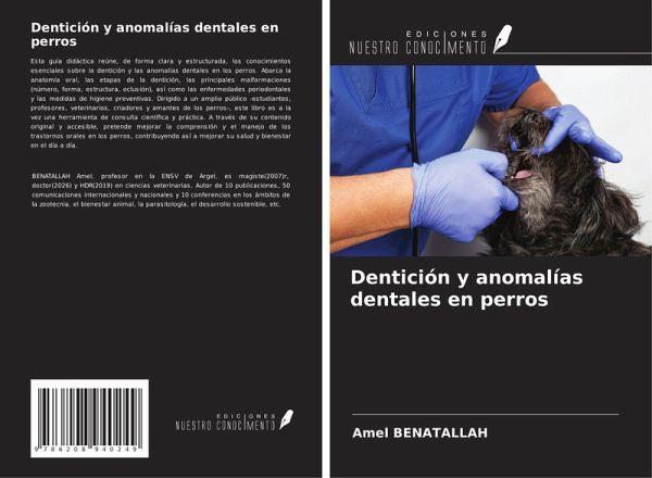 Esta guía didáctica reúne, de forma clara y estructurada, los conocimientos esenciales sobre la dentición y las anomalías dentales en los perros. Abarca la anatomía oral, las etapas de la dentición, las principales malformaciones (número, forma, estructura, oclusión), así como las enfermedades periodontales y las medidas de higiene preventivas. Dirigido a un amplio público -estudiantes, profesores, veterinarios, criadores y amantes de los perros-, este libro es a la vez una herramienta de consulta científica y práctica. A través de su contenido original y accesible, pretende mejorar la comprensión y el manejo de los trastornos orales en los perros, contribuyendo así a mejorar su salud y bienestar en el día a día.