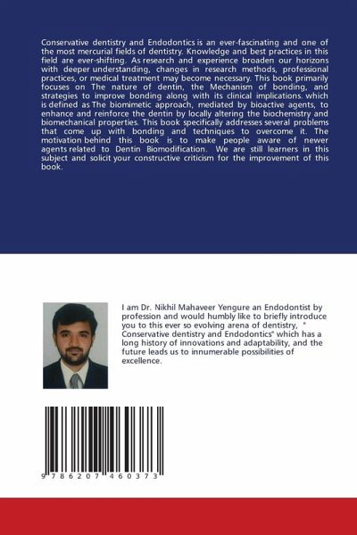 Conservative dentistry and Endodontics is an ever-fascinating and one of the most mercurial fields of dentistry. Knowledge and best practices in this field are ever-shifting. As research and experience broaden our horizons with deeper understanding, changes in research methods, professional practices, or medical treatment may become necessary. This book primarily focuses on The nature of dentin, the Mechanism of bonding, and strategies to improve bonding along with its clinical implications. which is defined as The biomimetic approach, mediated by bioactive agents, to enhance and reinforce the dentin by locally altering the biochemistry and biomechanical properties. This book specifically addresses several problems that come up with bonding and techniques to overcome it. The motivation behind this book is to make people aware of newer agents related to Dentin Biomodification. We are still learners in this subject and solicit your constructive criticism for the improvement of thisbook.