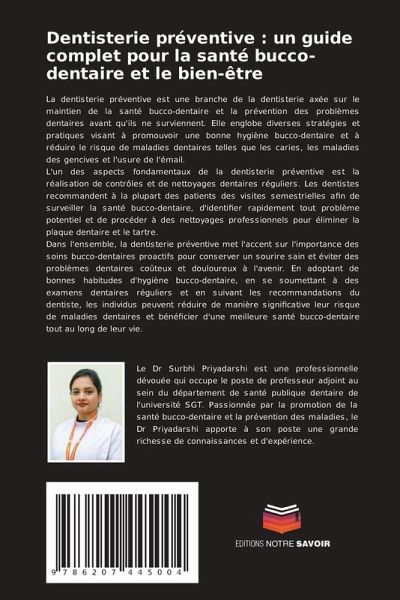 La dentisterie préventive est une branche de la dentisterie axée sur le maintien de la santé bucco-dentaire et la prévention des problèmes dentaires avant qu'ils ne surviennent. Elle englobe diverses stratégies et pratiques visant à promouvoir une bonne hygiène bucco-dentaire et à réduire le risque de maladies dentaires telles que les caries, les maladies des gencives et l'usure de l'émail.L'un des aspects fondamentaux de la dentisterie préventive est la réalisation de contrôles et de nettoyages dentaires réguliers. Les dentistes recommandent à la plupart des patients des visites semestrielles afin de surveiller la santé bucco-dentaire, d'identifier rapidement tout problème potentiel et de procéder à des nettoyages professionnels pour éliminer la plaque dentaire et le tartre.Dans l'ensemble, la dentisterie préventive met l'accent sur l'importance des soins bucco-dentaires proactifs pour conserver un sourire sain et éviter des problèmes dentaires coûteux et douloureux à l'avenir. En adoptant de bonnes habitudes d'hygiène bucco-dentaire, en se soumettant à des examens dentaires réguliers et en suivant les recommandations du dentiste, les individus peuvent réduire de manière significative leur risque de maladies dentaires et bénéficier d'une meilleure santé bucco-dentaire tout au long de leur vie.