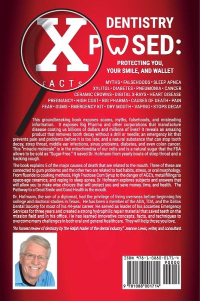 This is not an attack on dentistry nor any institution. It does, however, point out in a very diplomatic way weaknesses in Preventive Health in all levels from the government down. The main objective of the book is to educate the public and forewarn them of the many pitfalls, myths, and falsehoods along the way to good health. For instance, many books sold are promoting Apple Cider Vinegar as a cure-all without warning the public of certain dangers. These dangers included rampant tooth decay, diabetes, destruction of the gut microbiome, and colon cancer. The book reveals a simple way to counter all of these. Other causes of death related to the mouth include stress and sleep apnea hwich kills thousands each year. Another big problem is that vaping, smoking drugs, and consuming opioids is invading play grounds. The book reveals how major corporations manufacture disease. Why risk tooth decay, periodontal disease, Strep throat and colon cancer when there is a simple food-medicine that will prevent, protect, and even heal your body. This miracle molecule is actually "super-natural" in that it is found not only in trees, fruits and vegetables but also in the cells of your body - in the cell factory, the mitochondria. It is good to the taste and with over sixty years of research we know it prevents tooth decay, the spread of bad bacteria, the aggravating nasal and sinus congestion, middle ear infections and probably colon cancer. It helps to counter the manufactured diseases of Big Pharma such as dry mouth. Most doctors and the media have not heard of it and that is one reason why Dr. Hofmann calls this the "Untold Story."