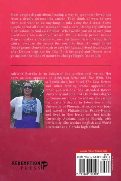 Most people dream about finding a way to save their loved one from a deadly disease like cancer. They think of ways to save them and want to do anything to take away the disease. Some people spend all their money to find a cure. Others try different medications to find an antidote. What would you do to save your loved one from a deadly disease? Well, a family pet cat named Denver makes a decision to save his human friend Hope from cancer because she means the world to him. An angel called Guide grants Denver's wish to save his human friend from cancer after Denver begs for help. Both the angel and Denver must go against the odds of nature to change Hope's fate in life.