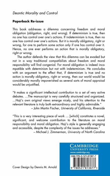 This book addresses a dilemma concerning freedom and moral obligation (obligation, right and wrong). If determinism is true, then no one has control over one's actions. If indeterminism is true, then no one has control over their actions. But it is morally obligatory, right or wrong for one to perform some action only if one has control over it. Hence, no one ever performs an action that is morally obligatory, right or wrong. The author defends the view that this dilemma can be evaded but not in a way traditional compatibilists about freedom and moral responsibility will find congenial. For moral obligation is indeed incompatible with determinism but not with indeterminism. He concludes with an argument to the effect that, if determinism is true and no action is morally obligatory, right or wrong, then our world would be considerably morally impoverished as several sorts of moral appraisal would be unjustified.