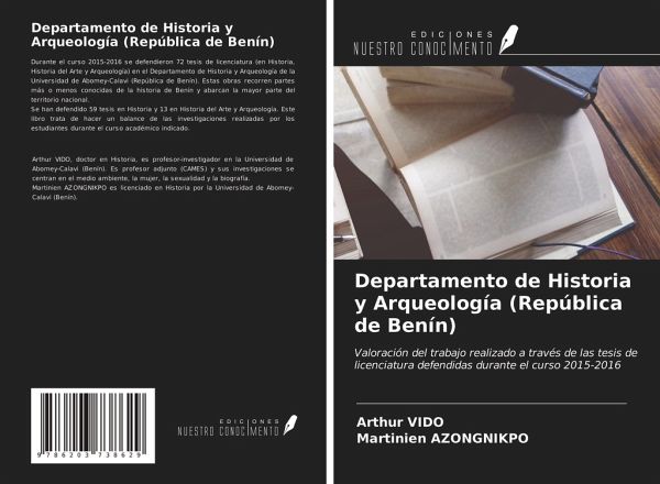 Durante el curso 2015-2016 se defendieron 72 tesis de licenciatura (en Historia, Historia del Arte y Arqueología) en el Departamento de Historia y Arqueología de la Universidad de Abomey-Calavi (República de Benín). Estas obras recorren partes más o menos conocidas de la historia de Benín y abarcan la mayor parte del territorio nacional.Se han defendido 59 tesis en Historia y 13 en Historia del Arte y Arqueología. Este libro trata de hacer un balance de las investigaciones realizadas por los estudiantes durante el curso académico indicado.