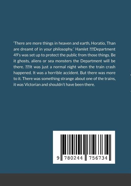 'There are more things in heaven and earth, Horatio, Than are dreamt of in your philosophy.' Hamlet. And it's Department 49's job to protect the public from those things. Be it ghost, aliens or sea monsters the Department will be there. It was just a normal night when the train crash happened. It was a horrible accident. But there was more two it. There was something strange about one of the trains, it was Victorian and shouldn't have been there.