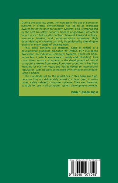 M. CARPENTIER Director General DG XIII, Telecommunications, Information Industries and Innovation of the Commission of the European Communities It is with great pleasure that I introduce and recommend this collection of guidelines produced by EWICS TC7. This Technical Committee has consistently attracted technical experts of high quality from all over Europe and the standard of the Committee's work has reflected this. The Committee has been sponsored by the Commission of the European Communities since 1978. During this period, there has been the opportunity to observe the enthusiasm and dedication in the activities of the group, the expertise and effort invested in its work, the discipline in meeting objectives and the quality of the resulting guidelines. It is no surprise that these guidelines have influenced the work of international standardisation bodies. Now the first six of EWICS TCTs guidelines are being made available as a book. I am convinced that all computer system developers who use them will greatly enhance their chances of achieving quality systems. v Acknowledgements In the preparation of this book, the editoLisgrateful to P. Bishop, G. Covington II, C. Goring, and W. Quirk for their help in editing the guidelines. In addition, he would like to thank S. Bologna, W. Ehrenberger, M. Ould, J. Rata, L. Sintonen and J. Zalewski for reviewing the chapters and providing additional material.