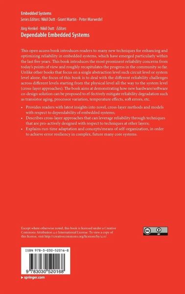 This Open Access book introduces readers to many new techniques for enhancing and optimizing reliability in embedded systems, which have emerged particularly within the last five years. This book introduces the most prominent reliability concerns from today's points of view and roughly recapitulates the progress in the community so far. Unlike other books that focus on a single abstraction level such circuit level or system level alone, the focus of this book is to deal with the different reliability challenges across different levels starting from the physical level all the way to the system level (cross-layer approaches). The book aims at demonstrating how new hardware/software co-design solution can be proposed to ef-fectively mitigate reliability degradation such as transistor aging, processor variation, temperature effects, soft errors, etc.