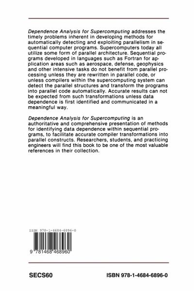 This book is on dependence concepts and general methods for dependence testing. Here, dependence means data dependence and the tests are compile-time tests. We felt the time was ripe to create a solid theory of the subject, to provide the research community with a uniform conceptual framework in which things fit together nicely. How successful we have been in meeting these goals, of course, remains to be seen. We do not try to include all the minute details that are known, nor do we deal with clever tricks that all good programmers would want to use. We do try to convince the reader that there is a mathematical basis consisting of theories of bounds of linear functions and linear diophantine equations, that levels and direction vectors are concepts that arise rather natu rally, that different dependence tests are really special cases of some general tests, and so on. Some mathematical maturity is needed for a good understand ing of the book: mainly calculus and linear algebra. Wehave cov ered diophantine equations rather thoroughly and given a descrip of some matrix theory ideas that are not very widely known. tion A reader familiar with linear programming would quickly recog nize several concepts. We have learned a great deal from the works of M. Wolfe, and K. Kennedy and R. Allen. Wolfe's Ph. D. thesis at the University of Illinois and Kennedy & Allen's paper on vectorization of Fortran programs are still very useful sources on this subject.