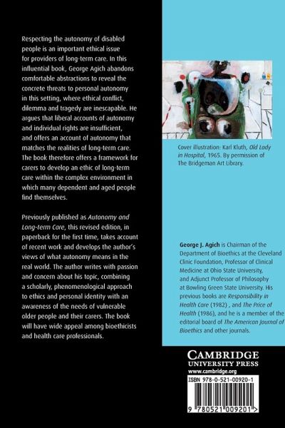 Respecting the autonomy of disabled people is an important ethical issue for providers of long-term care. In this influential book, George Agich abandons comfortable abstractions to reveal the concrete threats to personal autonomy in this setting, where ethical conflict, dilemma and tragedy are inescapable. He argues that liberal accounts of autonomy and individual rights are insufficient, and offers an account of autonomy that matches the realities of long-term care. The book therefore offers a framework for carers to develop an ethic of long-term care within the complex environment in which many dependent and aged people find themselves. Previously published as Autonomy and Long-term Care, this revised edition, in paperback for the first time, takes account of recent work and develops the author's views of what autonomy means in the real world. It will have wide appeal among bioethicists and health care professionals.